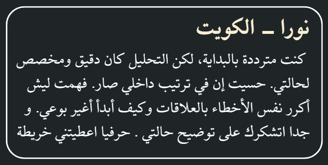 – تحليل نفسي سلوكي دقيق لحالتك .